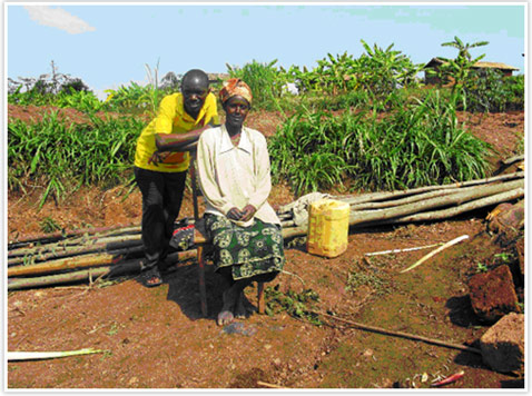 She is called Jeanne MUKANTABANA, 43 years old, a Genocide widow. She has 2 out five children are alive and they live close to her (Jeanette 26 years and Alexis 14 years old). She is now breastfeeding her Granddaughter to avoid her being infected since the mother (Jeanette married) lives with AIDS. Jeanette was raped in the 1994 Genocide when she was 12 her mom Jeanne told us.